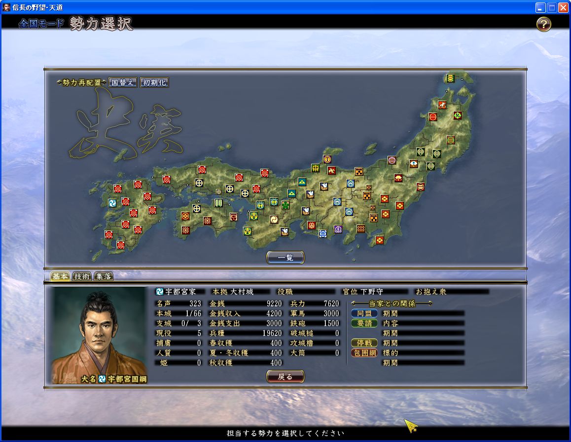 国替え数回でプレイできる大名家ではもっとも難易度が高いと思われる。